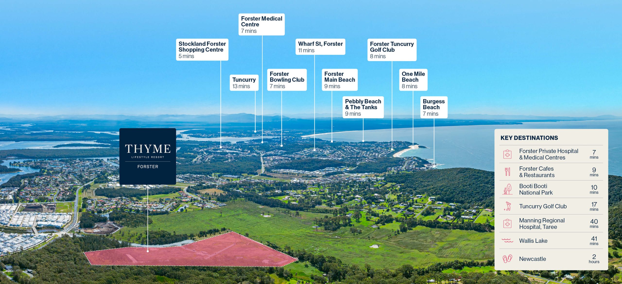 Located in the Great Lakes region in New South Wales, Thyme Forster places you right where you want to be. You’re close to the natural beauty of the Forster-Tuncurry estuary, pristine beaches and scenic national parks, while still enjoying the convenience of nearby cafés, shopping and essential services.